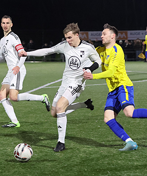 Ebenfalls in den Händen des FV-Schlussmanns landete einen Seitfallzieher von Robin Brummenbaum, der die akrobatische Einlage nach einer Flanke von Rituski Oyama ablieferte (10.). Die Hausherren – mit U19-Akteur Yasin Tarikus in der Startformation – schafften kaum einmal Entlastung, auf dem Weg nach vorne gingen die Bälle zu schnell verloren. Die Elf von Marcus Voike konnte aber kein Kapital aus ihrer Überlegenheit schlagen. Vollmer baggerte einen Schuss von Felix Adamietz in Volleyballer-Manier weg (19.), ehe der Keeper auch gegen Fritz Schäfer parierte (22.).