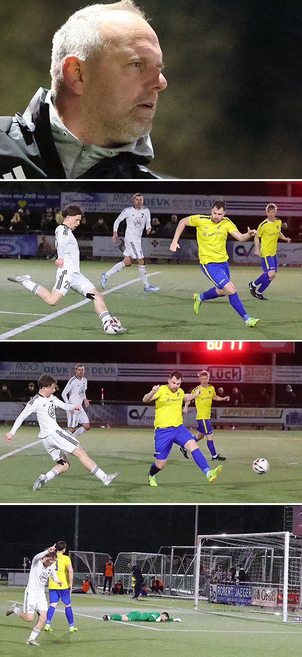 Hälfte zwei begann mit einem Paukenschlag: Trommler schnappte sich die Kugel im Mittelfeld, kurvte nach innen und nahm sich aus der zweiten Reihe ein Herz. Unhaltbar für Vollmer schlug das Leder im Giebel ein – die Führung für die Blau-Gelben, die allerdings danach in Passivität verfielen, wodurch sich die Equipe von Sascha Mühlmann Vorteile erarbeitete. Zuerst kam Nümbrecht noch mit einem blauen Auge davon, als Ali Can Gültekin eine Dabringhausen-Hereingabe völlig unbedrängt an die Querstange köpfte, doch kurz darauf war es so weit: Nach einem weiten Zuspiel von Vollmer wurde der Ball zu Dabringhausen weitergeleitet, der von halbrechts in den Strafraum eindrang und Schoepe mit einem Schuss ins kurze Eck düpierte – 1:1.Sollte der Ausgleich wiederum das Signal für Nümbrecht sein, wieder mehr zu investieren? Nein! Nachdem Florian Liebelts Versuch abgeblockt worden war (70.), resultierte einen weitere Co-Produktion von Peters und Dabringhausen – laut Mühlmann jeweils schon Kandidaten für eine Auswechslung – im 2:1. Dabringhausen bediente seinen Sturmpartner mit einem traumhaften Diagonalpass. Nach einer perfekten Annahme schlenzte Peters das Spielgerät in die Maschen.